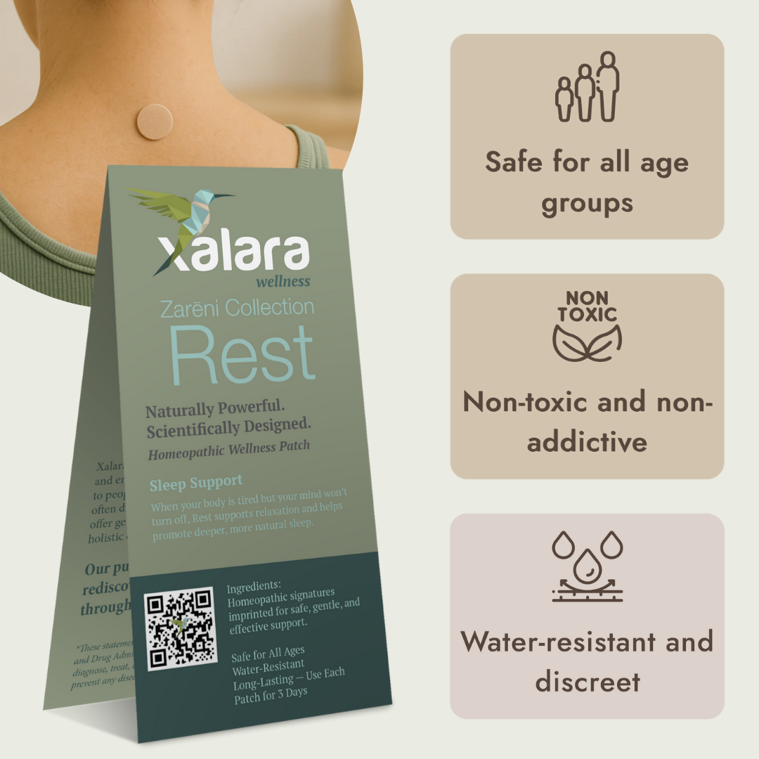 Xalara patches are ingredient-free, non-invasive, and safe for all ages. Each patch is imprinted with gentle energy signals designed to support your body’s natural balance.